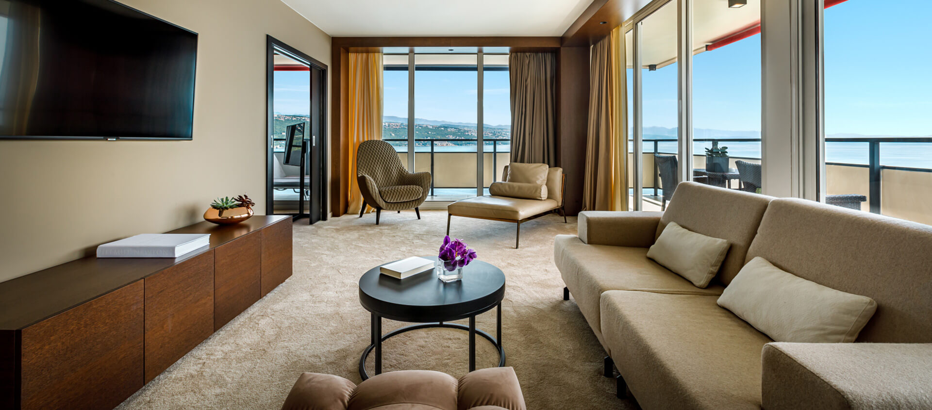 Das Hotel Ambasador in Opatija thront majestätisch an der malerischen Küste der Kvarner Bucht, umgeben von einem üppigen Gartenparadies und dem glitzernden Blau des Adriatischen Meeres. Hier, wo sich atemberaubende Natur mit eleganter Architektur vereint, erleben Gäste eine harmonische Verbindung von Luxus und mediterranem Flair.